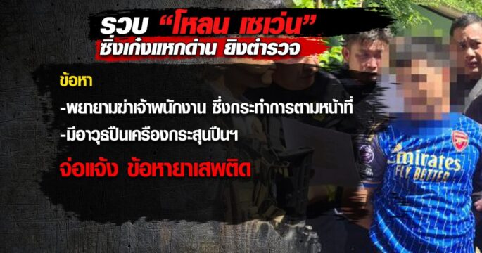 ตำรวจบุกรวบ “โหลน เซเว่น” หนีกบดานบ้านญาติใน จ.พัทลุง หลังขับเก๋งแหกด่าน ยิงปืนใส่เจ้าหน้าที่ ขณะตั้งด่านกลางเมืองหาดใหญ่ จ.สงขลา สอบสวนอ้างตกใจขับรถเจอด่าน และในรถมีอาวุธปืน จึงต้องขับหลบหนี