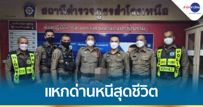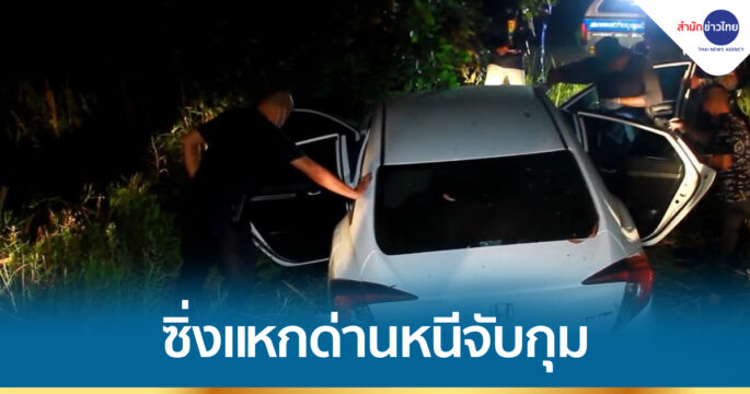 ไล่ล่าผู้ต้องหาหนีหมายจับขับเก๋งแหกด่านหลบหนีพบมีหมายจับ 3 คดี ทั้งพรากผู้เยาว์และยาเสพติด