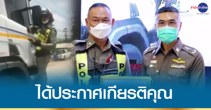 ผบก.ภ.จว.อุดรธานี มอบใบประกาศเกียรติคุณให้กับตำรวจจราจร สภ.เมืองอุดรธานี ที่กระโดดเกาะรถบรรทุกน้ำมันแหกด่าน จากการปฏิบัติหน้าที่ด้วยความอุตสาหะ