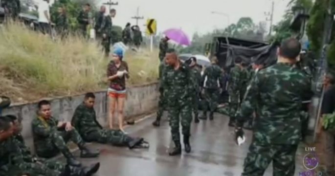 เกิดอุบัติเหตุรถ GMC ของหน่วยทหาร สังกัดกองพันทหารม้าที่ 15 จังหวัดน่าน แหกโค้งเสียหลักพลิกค่ำชนกับเสาไฟฟ้า บนถนนสายเชียงราย- เทิง บ้านโป่งเกลือ จ.เชียงราย