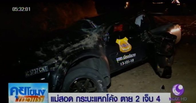 6 อาสากู้ภัยชัยนาทขับรถกระบะจะมาท่องเที่ยวเขตชายแดนแม่สอด จ.ตาก รถแหกโค้งพลิกคว่ำหลายตลบ คนกระเด็นออกนอกรถตาย 2 ศพ บาดเจ็บ 4 ราย