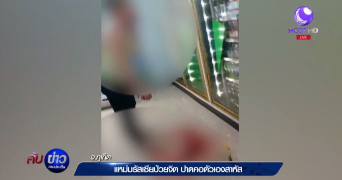 แพร่สะพัดโลกโชเชียล คลิปสาวชาวรัสเซียเครียดจัดใช้มีดปาดคอตัวเองหวังฆ่าตัวตายในร้านสะดวกซื้อกลางหาดป่าตอง จ.ภูเก็ต เบื้องต้นอาการปลอดภัยแล้ว พบป่วยโรคจิต