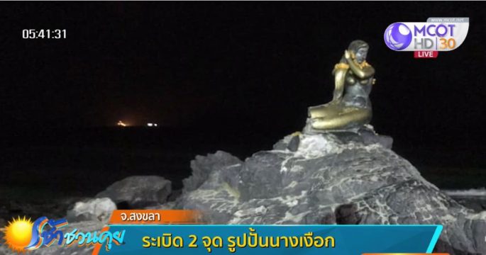 สงขลา 8 ธ.ค.-สงขลาอ่วม คลื่นลมแรงซัดแนวชายฝั่ง 6 อำเภอ โดยเฉพาะชายหาดแหลมสมิหลา คลื่นลมแรงขึ้น เตือนอย่าลงไปถ่ายรูปคู่นางเงือกทอง หวั่นถูกคลื่นซัดไม่ปลอดภัย จังหวัดสงขลายังคงเผชิญกับภาวะคลื่นลมแรงอย่างต่อเนื่อง โดยเฉพาะวันนี้(8 ธ.ค.) ซึ่งสภาพคลื่นลมได้เพิ่มกำลังแรงขึ้น เช่น ที่ชายหาดแหลมสมิหลา จ.สงขลา ซึ่งเป็นแหล่งท่องเที่ยวทางทะเล คลื่นได้ซัดถาโถมเข้าใส่รูปปั้นนางเงือกทอง สัญลักษณ์ของชายหาดแหลมสมิหลาอย่างต่อเนื่อง จนต้องมีการแจ้งเตือนนักท่องเที่ยวให้หลีกเลี่ยงการลงไปถ่ายรูปคู่กับนางเงือก เพื่อความปลอดภัย เพราะเสี่ยงถูกคลื่นซัดและโขดหินที่ลื่น ในขณะที่พื้นที่ตลอดแนวชายฝั่งของ จ.สงขลา ทั้ง 6 อำเภอ ไล่ตั้งแต่ อ.ระโนด อ.สทิงพระ อ.สิงหนคร อ.เมือง อ.จะนะ และอ.เทพา ยังคงเผชิญกับคลื่นลมแรงที่ซัดเข้าสู่ชายฝั่งทะเลเช่นกัน ทำให้บ้านเรือนพังเสียหาย ถนนขาด ในพื้นที่ ต.ท่าบอน อ.ระโนด.-สำนักข่าวไทย