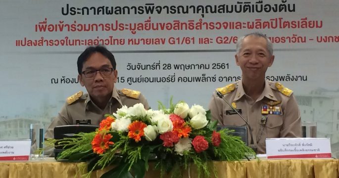กรมเชื้อเพลิงธรรมชาติ ประกาศผลผู้ผ่านคุณสมบัติเบื้องต้น เข้าชิงสิทธิสำรวจและผลิตปิโตรเลียม แปลงสำรวจในทะเลอ่าวไทย แปลง G1/61 5 ราย และ G2/61 4 ราย