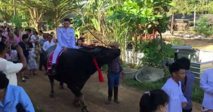 เจ้าบ่าวนายตำรวจลูกชาวนา ขี่ควายแห่ขันหมากไปขอสาวแต่งงาน เป็นควายสวยงามมีรางวัลการันตีระดับประเทศ