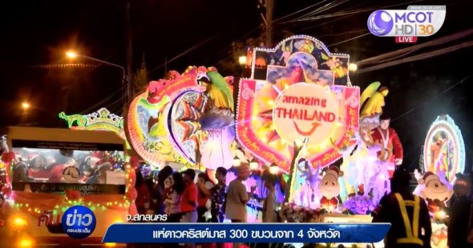 แห่ดาวคริสต์มาส จ.สกลนคร ยิ่งใหญ่ ประดับตกแต่งไฟหลากสี มีกวางเรนเดียร์ พร้อมซานตาคลอส ซานตี้