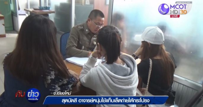 3 นักศึกษาสาว สถาบันอุดมศึกษาในเชียงใหม่ แจ้งความตำรวจ ให้ดำเนินคดีกับอาจารย์ใช้แท็บแล็ตวางกับพื้นห้องเรียน แอบถ่ายใต้กระโปรง จนนักศึกษาวางแผนจับได้คาหนังคาเขา