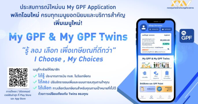 กรุงเทพฯ 21 ธ.ค.-กบข. เปิดตัวเมนูใหม่ My GPF & My GPF Twins เพื่อช่วยให้สมาชิกวางแผนการเงินเพื่อวันเกษียณได้อย่างแม่นยำมากขึ้น พร้อมปรับโฉมแอปพลิเคชันครั้งใหญ่ หวังเพิ่มประสิทธิภาพให้บริการ