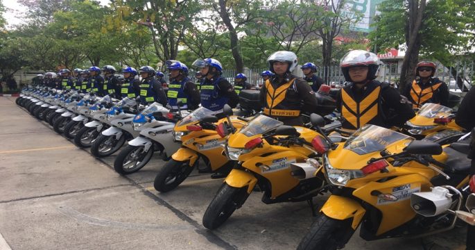 ตำรวจจราจร ปล่อยแถวระดมกำลังดูแลความปลอดภัยและการจราจรในช่วงเทศกาลสงกรานต์ พร้อมรณรงค์ให้ประชาชนแจ้งเหตุด่วนเหตุร้ายและการขับขี่อย่างปลอดภัย ผ่านแอพพลิเคชันโปลิศไอเลิร์ทยู (Police i lert u) และแอพพลิเคชันเกตแวนบุ๊กกิ้ง (Getvan booking)