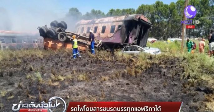 รถไฟโดยสารพุ่งชนรถบรรทุกขณะแล่นข้ามทางข้ามรถไฟจนเกิดเพลิงลุกไหม้ ในแอฟริกาใต้ มีผู้เสียชีวิตอย่างน้อย 12 คน บาดเจ็บกว่า 180 คน