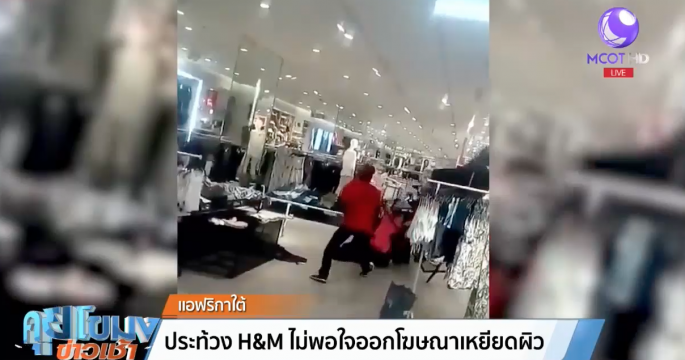 นักเคลื่อนไหวในแอฟริกาใต้รวมตัวประท้วงและพังร้านค้า H&M แบรนด์เสื้อผ้าชื่อดังในเมืองโยฮันเนสเบิร์ก ไม่พอใจโฆษณาสินค้าของบริษัท ที่เรียกเด็กผิวสีว่าเป็นลิงที่ฉลาดที่สุดในป่า