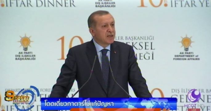 ประธานาธิบดีเรเจฟ ทายยิป แอร์โดอาน ของตุรกี กล่าวว่า การโดดเดี่ยวกาตาร์จะไม่ช่วยแก้ปัญหาใด ๆ ได้ สิ่งที่ถูกต้องที่ชาติสมาชิกความร่วมมืออ่าวอาหรับควรทำในเวลานี้คือ การเปิดเจรจากัน