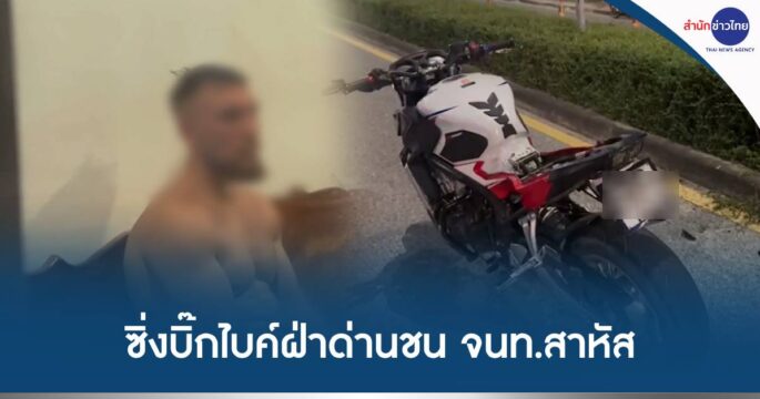 พัทยาวุ่น ชายต่างชาติขี่บิ๊กไบค์ฝ่าด่านตรวจ ชนเจ้าหน้าที่ล้มหัวฟาดพื้น ก่อนวิ่งหนีเข้าป่าละเมาะ ต้องใช้ตำรวจกว่า 50 นาย ปิดล้อมจับตัว