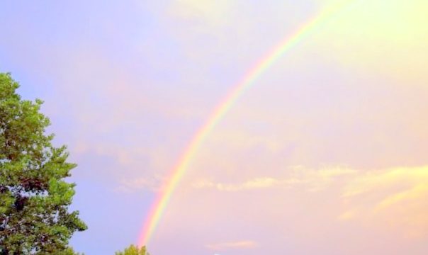 รุ้งกินน้ำขึ้นบนท้องฟ้าเหนือพื้นที่ทอร์นาโดในสหรัฐ