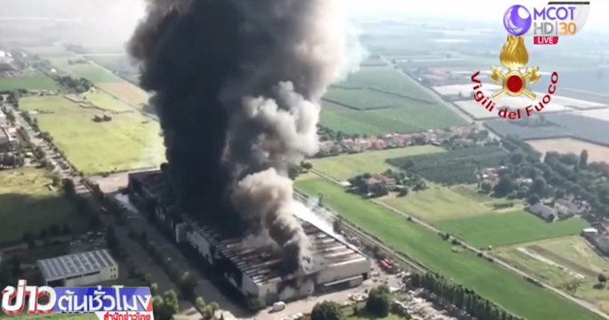 เกิดเหตุเพลิงไหม้โกดังเก็บสินค้าาใกล้เมืองโบโลญญาของอิตาลี ไม่มีรายงานผู้เสียชีวิต ส่วนทางการยืนยันไม่พบสารพิษปนเปื้อนในอากาศ