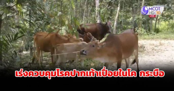 ตรังเร่งควบคุมโรคปากเท้าเปื่อยในโค กระบือ พร้อมกับตั้งด่านจุดตรวจพื้นที่รอยต่อ เพื่อเฝ้าระวังการลักลอบ ควบคุมการเคลื่อนย้ายสัตว์