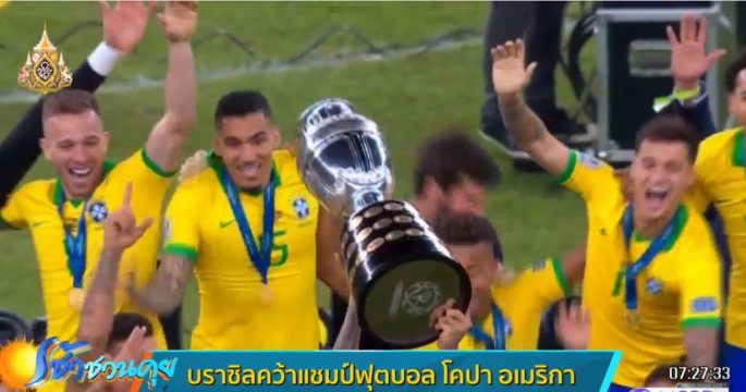 ผลฟุตบอลโคปา อเมริกา บราซิลชนะเปรู 3 -1 คว้าแชมป์ฟุตบอลโคปา อเมริกา ไปครองเป็นครั้งที่ 9 และเป็นครั้งแรกในรอบ 12 ปี