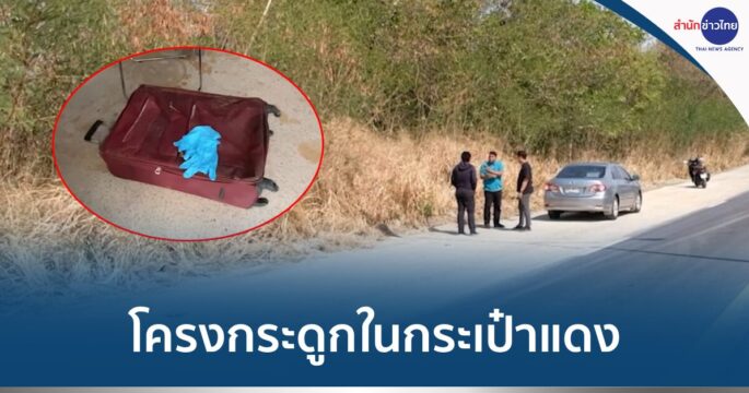 เร่งตรวจสอบโครงกระดูกมนุษย์ ในกระเป๋าเดินทางใบใหญ่สีแดง วางทิ้งในร่องน้ำข้างถนนสายห้วยใหญ่ อ.บางละมุง จ.ชลบุรี