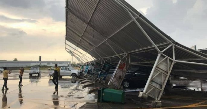 พายุถล่มโคราช พังโครงหลังคาจอดรถศูนย์สินค้าชื่อดัง