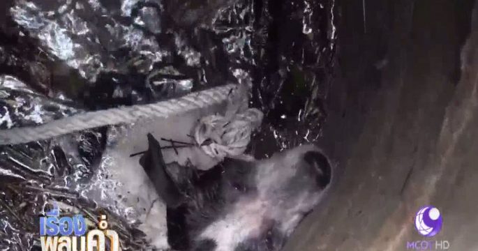 เจ้าหน้าที่กู้ภัยโคราชช่วยสุนัขท้องแก่พลัดตกบ่อซีเมนต์ลึก 10 เมตร ในป่ารกร้าง นำเชือกคล้องคอขึ้นมาได้ปลอดภัย