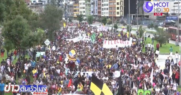นักศึกษาหลายพันคน เดินประท้วงเรียกร้องให้รัฐบาลโคลอมเบีย เพิ่มงบประมาณด้านการศึกษา นอกจากนี้ยังมีสมาชิกสหภาพแรงงาน ครู และข้าราชการร่วมเดินขบวนประท้วงด้วย