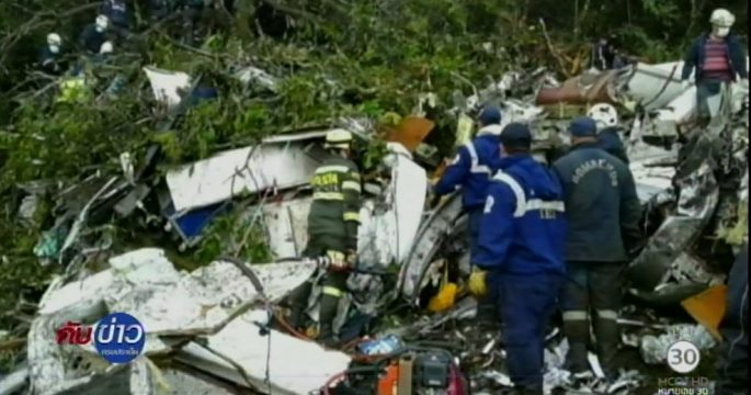 เกิดเหตุเครื่องบินเช่าเหมาลำตกในโคลอมเบีย พร้อมผู้โดยสารบนเครื่อง 81 คน รวมทั้งนักฟุตบอลทีมชาเปโคเอนเซ่ ของบราซิล ที่เดินทางไปเตะรอบสุดท้ายนัดแรก