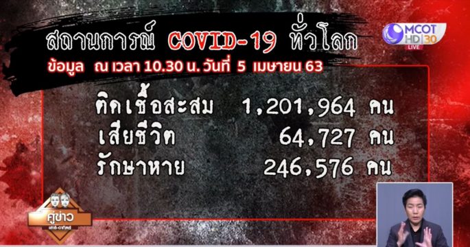 กรุงเทพฯ 24 พ.ย.- ไทยพบผู้ติดเชื้อโควิด-19 รายใหม่วันนี้ 2 รายกลับจากต่างประเทศ รวมผู้ป่วยสะสม 3,922 ราย และเสียชีวิตสะสม 60 ราย ขณะที่ทั่วโลกวันนี้จ่อ 60 ล้านรายแล้ว เพจเฟซบุ๊ก ศูนย์ข้อมูลCOVID-19 รายงานสถานการณ์ประจำวันอังคารที่ 24 พฤศจิกายน 2563 ว่า มีผู้ป่วยรายใหม่ 2 ราย ผู้ป่วยยืนยันสะสม 3,922 ราย หายป่วยแล้ว 3,772 ราย เสียชีวิตสะสม 60 ราย โดยผู้ป่วยรายใหม่ 2 ราย สัญชาติอินเดีย 1 ราย ปากีสถาน 1 ราย ทั้งหมดเดินทางมาจากต่างประเทศ จากอินเดีย 1 ราย ปากีสถาน 1 ราย เข้าพักสถานที่กักกันที่รัฐจัดให้ (Alternative State Quarantine) […]
