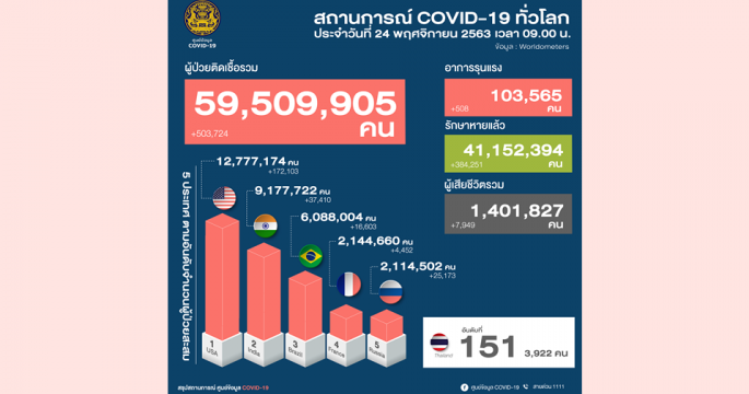 โควิด-19 ทั่วโลกจ่อ 60 ล้านราย