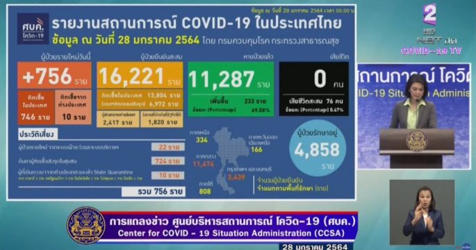 พบผู้ป่วยรายใหม่ 756 ราย ผู้ป่วยยืนยันสะสม 16,221 ราย หายป่วยแล้ว 11,287 ราย เสียชีวิตสะสม 76 ราย