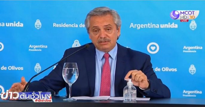 อาร์เจนตินา 30 มี.ค. – ประธานาธิบดีอัลเบอร์โต เฟอร์นันเดซ ผู้นำอาร์เจนตินา ประกาศขยายระยะเวลาปิดประเทศไปจนถึงวันที่ 12 เมษายนนี้ เพื่อต่อสู้กับการแพร่ระบาดของเชื้อไวรัสโคโรนา 2019 ผู้นำอาร์เจนตินา กล่าวว่า เมื่อเทียบกับประเทศอื่น ๆ แล้ว สถานการณ์การแพร่ระบาดของเชื้อไวรัสโคโรนา 2019 ในอาร์เจนตินาถือว่าดีกว่าประเทศอื่น พร้อมเตือนจะจัดการอย่างจริงจังกับบรรดาผู้ประกอบการที่ฉวยโอกาสขึ้นราคาสินค้า และไล่พนักงานออก ส่วนยอดผู้ติดเชื้อไวรัสโคโรนา 2019 ในอาร์เจนตินา จนถึงขณะนี้มี 820 คน เสียชีวิต 20 คน สถานการณ์การแพร่ระบาดของเชื้อไวรัสโคโรนา 2019 ส่งผลให้มีผู้ติดเชื้อทั่วโลกแล้วอย่างน้อย 7 20,000 คน เสียชีวิตแล้ว 33,000 คน สร้างความเสียหายอย่างหนักต่อเศรษฐกิจ ผู้คนหลายล้านคนถูกจำกัดการเดินทาง เพื่อหยุดยั้งการแพร่ระบาดของเชื้อไวรัสโคโรนา 2019. – สำนักข่าวไทย