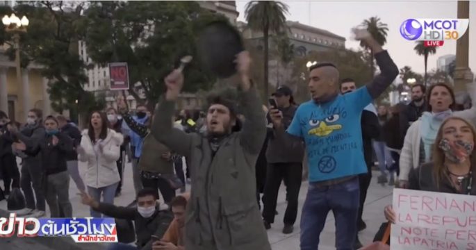 ชาวอาร์เจนตินาออกมาประท้วงต่อต้านประธานาธิบดีอัลแบร์โต เฟอร์นันเดซ และคัดค้านมาตรการเข้มงวดในการควบคุมการแพร่ระบาดโรคโควิด-19 ที่ใช้มานานหลายเดือน