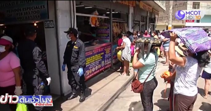 ชาวเปรูแห่กักตุนอาหาร ร้านค้าและตลาดในกรุงลิมาเต็มไปด้วยฝูงชน หลังรัฐบาลประกาศเพิ่มมาตรการเข้มงวดขึ้นในช่วงเทศกาลอีสเตอร์ เพื่อควบคุมโควิด-19 ระบาด เปรูมีผู้ติดเชื้อแล้ว 2,289 คน เสียชีวิต 83 คน