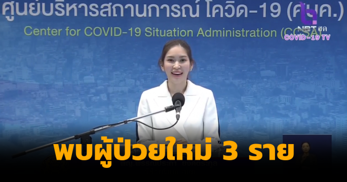 สถานการณ์โควิด-19 ไทยพบผู้ป่วยรายใหม่ 3 ราย เดินทางไปสถานที่ชุมชน กลับจากอียิปต์ และอินเดีย ผู้ป่วยสะสม 3,040 ราย รักษาในโรงพยาบาล 68 ราย เสียชีวิตคงที่ 56 ราย
