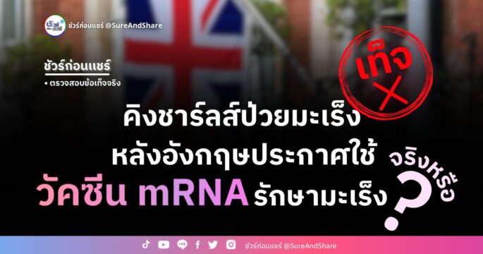 ชัวร์ก่อนแชร์: คิงชาร์ลส์ป่วยมะเร็ง หลังอังกฤษใช้วัคซีน mRNA รักษามะเร็ง จริงหรือ?