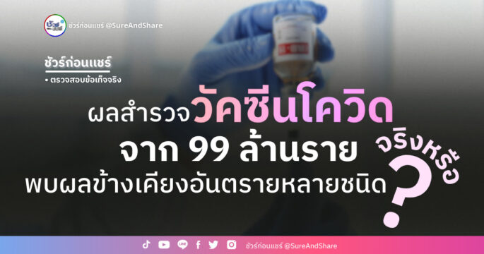 ชัวร์ก่อนแชร์: ผลสำรวจวัคซีนโควิดจาก 99 ล้านคน พบผลข้างเคียงอันตรายหลายชนิด จริงหรือ?