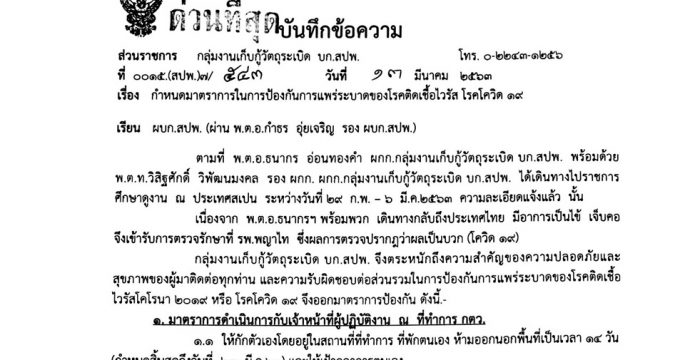 บก.สปพ.เผยมีกำลังพลในสังกัด 1 นาย ติดโควิด-19จากการไปดูงานที่สเปน อีก 3 รอผลตรวจ พร้อมกำหนดมาตรการป้องกัน
