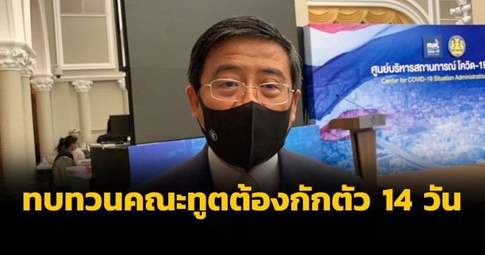 โฆษก กต.เผยเสนอ ศบค.ชุดเล็กทบทวนมาตรการให้คณะทูตต้องเข้ากักตัวในสถานที่รัฐจัดให้ 14 วันพร้อมเสียค่าใช้จ่ายเอง ยกเลิก 8 เที่ยวบินทหารอียิปต์ที่ขอเข้าไทย