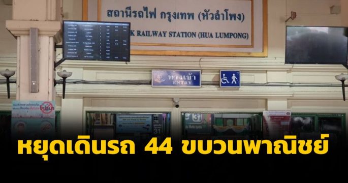 การรถไฟฯ ต้องหยุดเดินรถเชิงพาณิชย์ถึง 44 ขบวนวันนี้ หลังหลายจังหวัดปิดการคมนาคม