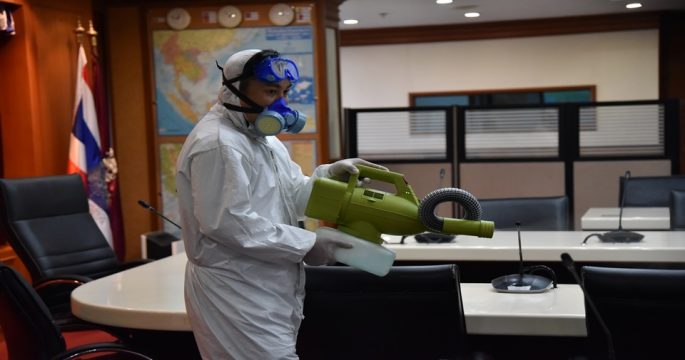 “บิ๊กแป๊ะ” สั่งพ่นยาป้องกันการแพร่ระบาดเชื้อไวรัสโควิด 19 ทุกซอกมุม ห้องประชุม ห้องแถลงข่าวและศูนย์สื่อมวลชน