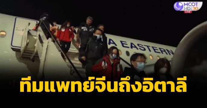 ทีมแพทย์ผู้เชี่ยวชาญจากจีน 9 คน เดินทางถึงกรุงโรมของอิตาลีแล้ว พร้อมอุปกรณ์ทางการแพทย์และหน้ากากอนามัย ร่วมช่วยเหลืออิตาลีต่อสู้กับวิกฤติโควิด-19