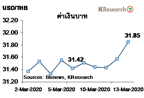 เงินบาทอ่อนค่าลง ขณะที่ตลาดหุ้นไทยร่วงหนัก จนต้องใช้มาตรการระงับการซื้อขายชั่วคราว (Circuit Breaker) ถึง 2 ครั้งในระหว่างสัปดาห์