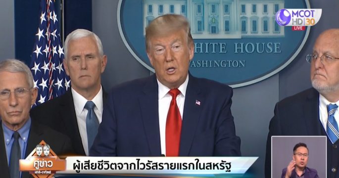 สหรัฐยืนยันมีผู้เสียชีวิตจากโรคโควิด-19 รายแรกของประเทศ ขณะที่ประธานาธิบดีโดนัลด์ ทรัมป์ของสหรัฐ เรียกร้องชาวอเมริกันอย่างได้ตื่นตระหนก