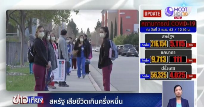 สหรัฐครองตำแหน่งประเทศที่มีผู้ติดเชื้อมากที่สุดในโลกกว่า 2 แสนคน ขณะที่ยอดผู้เสียชีวิตพุ่งเกิน 5,000 คนแล้ว ด้านองค์การอนามัยโลกระบุว่ายอดผู้ติดเชื้อทั่วโลกจะแตะ 1 ล้านคนภายใน 2-3 วันนี้