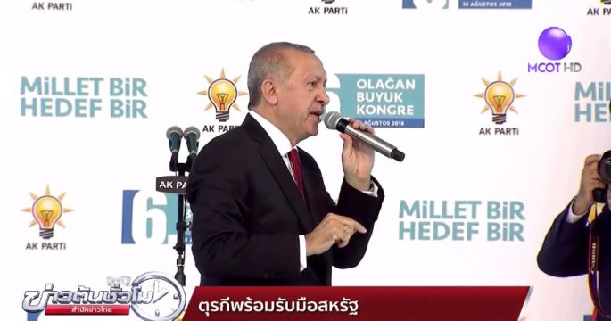 ประธานาธิบดีเรเจพ ทายยิพ แอร์โดอาน ของตุรกีประกาศต่อหน้าผู้สนับสนุนในกรุงอังการานับหมื่นคนเมื่อวานนี้ว่า ตุรกีพร้อมต่อสู้ความพยายามของสหรัฐที่จะโค่นล้มรัฐบาลตุรกี