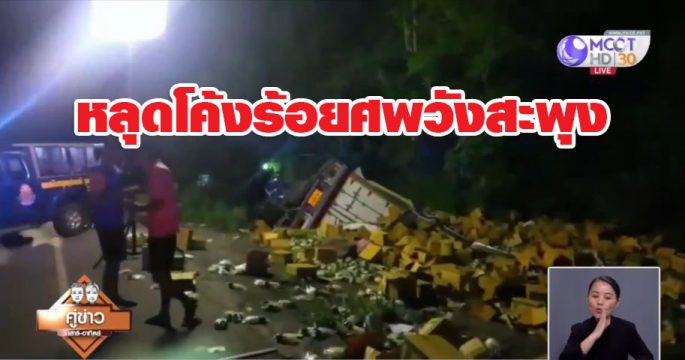 รถบรรทุกพ่วงขนลำไยเบรกแตกพลิกคว่ำบนทางหลวงชนบท ช่วงโค้งร้อยศพ อ.วังสะพุง จ.เลย คนขับรถเสียชีวิต ภรรยาบาดเจ็บ