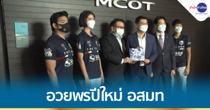เลขาฯ สมาคมกีฬาเทควันโดฯ พร้อมโค้ชเช “น้องเทนนิส” พาณิภัค และ “จูเนียร์” รามณรงค์ เข้าสวัสดีและอวยพรปีใหม่กรรมการ ผอ.ใหญ่ บมจ.อสมท