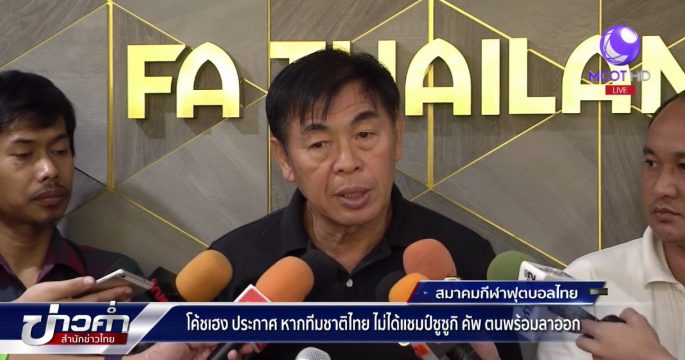 “โค้ชเฮง” วิทยา เลาหกุล ประธานเทคนิคสมาคมกีฬาฟุตบอลไทย พร้อมลาออกทันทีหากทีมชาติไทยล้มเหลวในศึกเอเอฟเอฟ ซูซูกิ คัพ ปลายปีนี้
