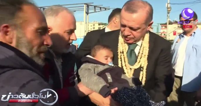 คาริม ทารกชาวซีเรียที่สูญเสียดวงตาไปหนึ่งข้าง จากการโจมตีทางอากาศในซีเรีย พร้อมด้วยครอบครัว เข้าพบประธานาธิบดีเรเจพ ทายยิพ แอร์โดอาน ของตุรกี