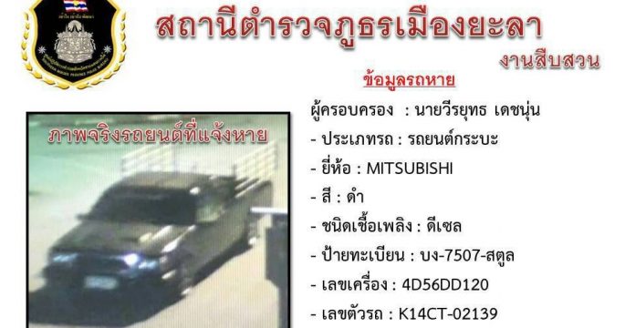 ด่วน! แจ้งเตือนรถกระบะมิตซูฯถูกโจรกรรมหวั่นนำไปทำคาร์บอมบ์