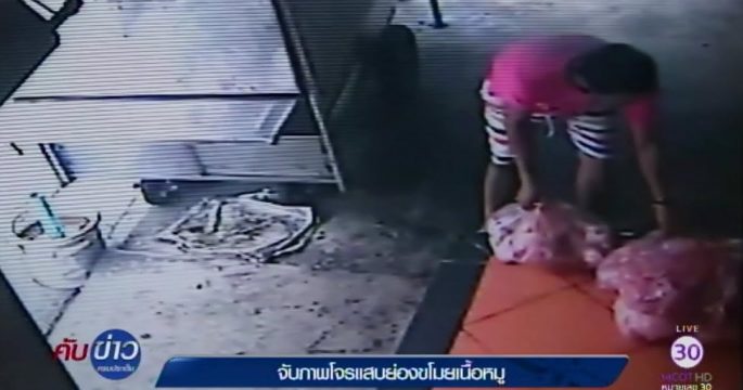 จับภาพโจรแสบย่องขโมยเนื้อหมู